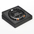 Introducing our new masculine range inspired by semi-precious stones. Elastic bracelet for men with tiger eye and black agate 8 mm beads presented on grey suede insert and packed in elegant black box. Bracelet is available in lengths of 18 cm. Great gift idea for every stylish man.