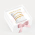 All bracelets are wrapped around a plush white cushion, nestled on a gold-foiling card and presented in an elegant white gift box tied with a soft pink ribbon – ready for gifting.