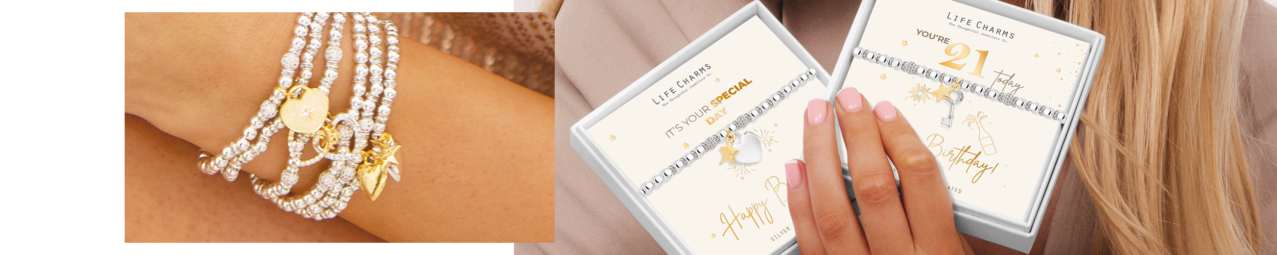 Celebrate every special age with our Birthday Milestone Bracelets - 12 beautiful designs in silver and gold, marking milestone birthdays from their 13th to 90th. The perfect gift to honour life’s most memorable moments. Each piece comes beautifully packaged in a free Life Charms gift box.