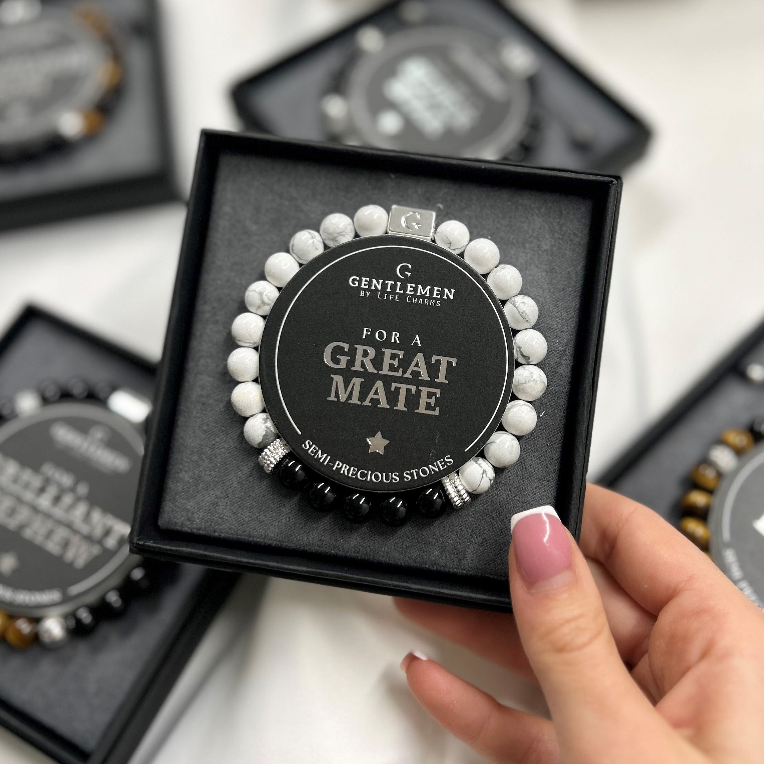 Grey jasper & black agate semi precious beaded elastic bracelet - Thank youGrey jasper & black agate semi precious beaded elastic bracelet - Thank you Grey jasper & black agate semi precious beaded elastic bracelet - Thank youGrey jasper & black agate semi precious beaded elastic bracelet - Thank you- Regular price