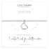 Introducing our Just To Say range to celebrate all of life's treasured moments. Featuring beautiful 4 mm beaded bracelet made from the finest silver pleated beads. Presented on a sentiment card with an inspiring message "I couldnt wish for a better sister" and nestled in a white gift box ready for gifting. The bracelet measures 17.5 cm with some room to stretch. A truly thoughtful and pretty gift for someone special that you love and care about.