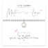 Fresh water pearl with silver plated band charm, presented on a 5mm silver plated beaded stretch bracelet. The bracelet comes on a #Just Because card with 'I'm So Glad You're My Mother In Law' printed on it and presented in a luxury gift box. All jewellery is finished to the highest standard and e-coated to prevent any tarnishing.