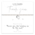 Presented on a card with wording 'Thank you for helping us