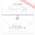 Delicate silver beaded adjustable bracelet from our Just Because Collection with crystal flower charm with freshwater pearl and Life Charms logo tag.